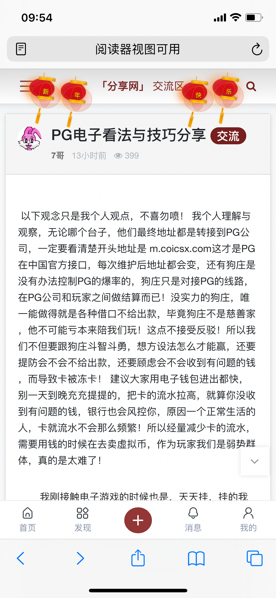 以下观念只是我个人观点,不喜勿喷! 我个人理解与观察,无论哪个台子,他们最终地址都是转接到PG公司,一定要看清楚开头地址是 m.coicsx.com这才是PG在中国官方接口,每次维护后地址都会变,还有狗庄是没有办法控制PG的爆率的,狗庄只是对接PG的线路,在PG公司和玩家之间做结算而已!没实力的狗庄,唯一能做得就是各种借口不给出款,毕竟狗庄不是慈善家,他不可能亏本来陪我们玩!这点不接受反驳!所以我们不但要跟狗庄斗智斗勇,想方设法怎么才能赢,还要提防会不会不给出款,还要顾虑会不会收到有问题的钱,而导致卡被冻卡! 建议大家用电子钱包进出都快,别一天到晚充充提提的,把卡的流水拉高,就算你没收到有问题的钱,银行也会风控你,原因一个正常生活的人,卡就流水不会那么频繁!所以经量减少卡的流水,需要用钱的时候在去卖虚拟币,作为玩家我们是弱势群体,真的是太难了!