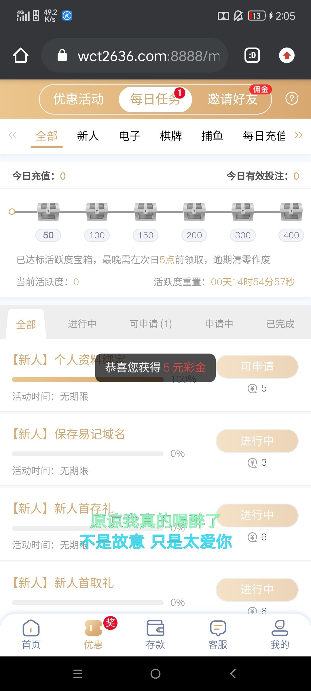 注册绑卡,优惠每日任务,先领五元首页,上面的域名点击保存领三元,共计八元出款自测啊!