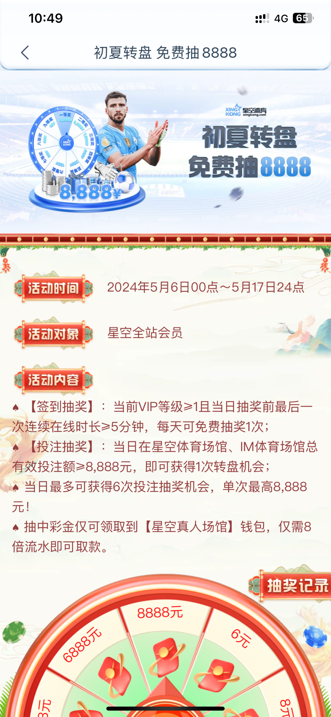 星空体育 半岛系列 明天有登录在线彩金 要求vip1以上