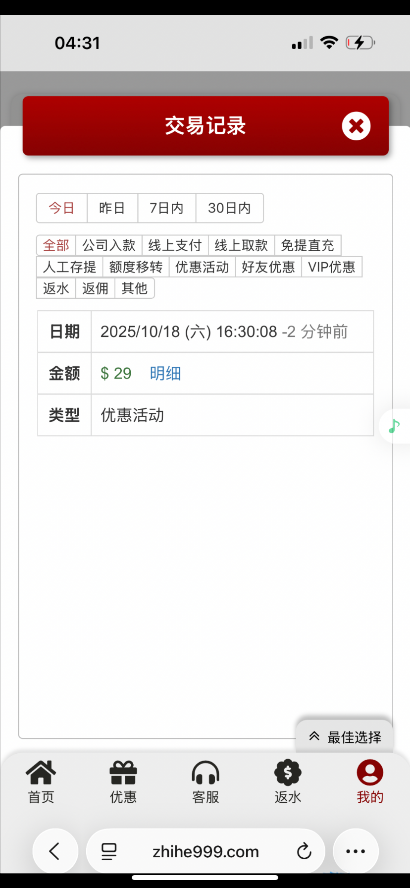 989898.vip 短信特邀注册就直接送了29彩金 没有找客服