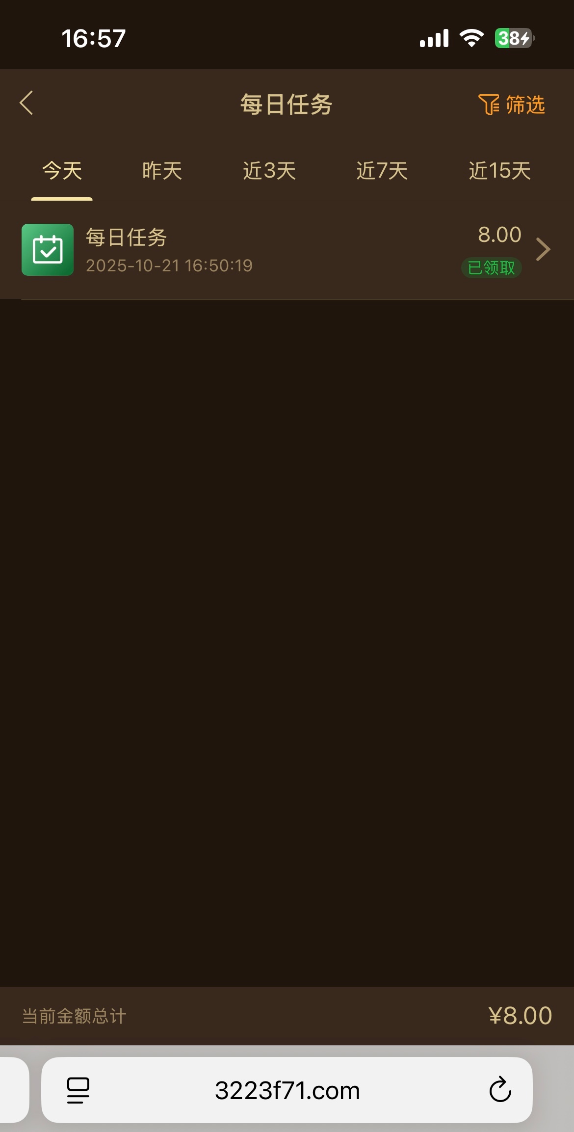 之前有老哥发过现在又可以领,每日任务里面完善信息送8 网址3223.com