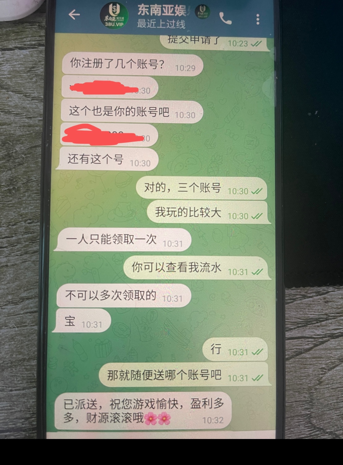 @dnyyljlq里面添加彩金客服发账号和U地址审核,平台优惠活动里面自助申请提交注册彩金,提交时我没有汇旺账号填写的平台账号,第一次提交会申请审核失败,客服会主动叫你添加平台机器人绑定账号后在到平台里在申请提交一次!第二次提交申请就会送,最低128u才能提