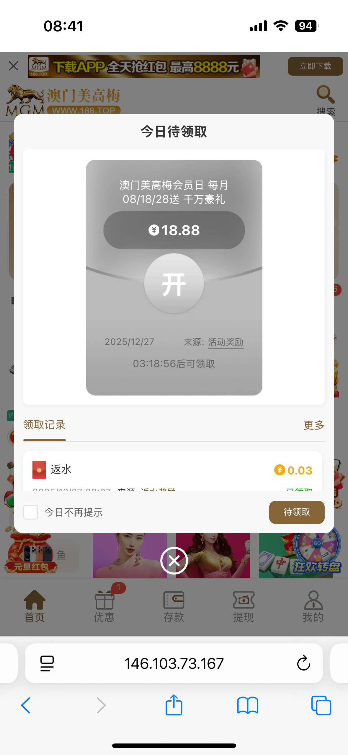 不充值一百,拿不到在18.88