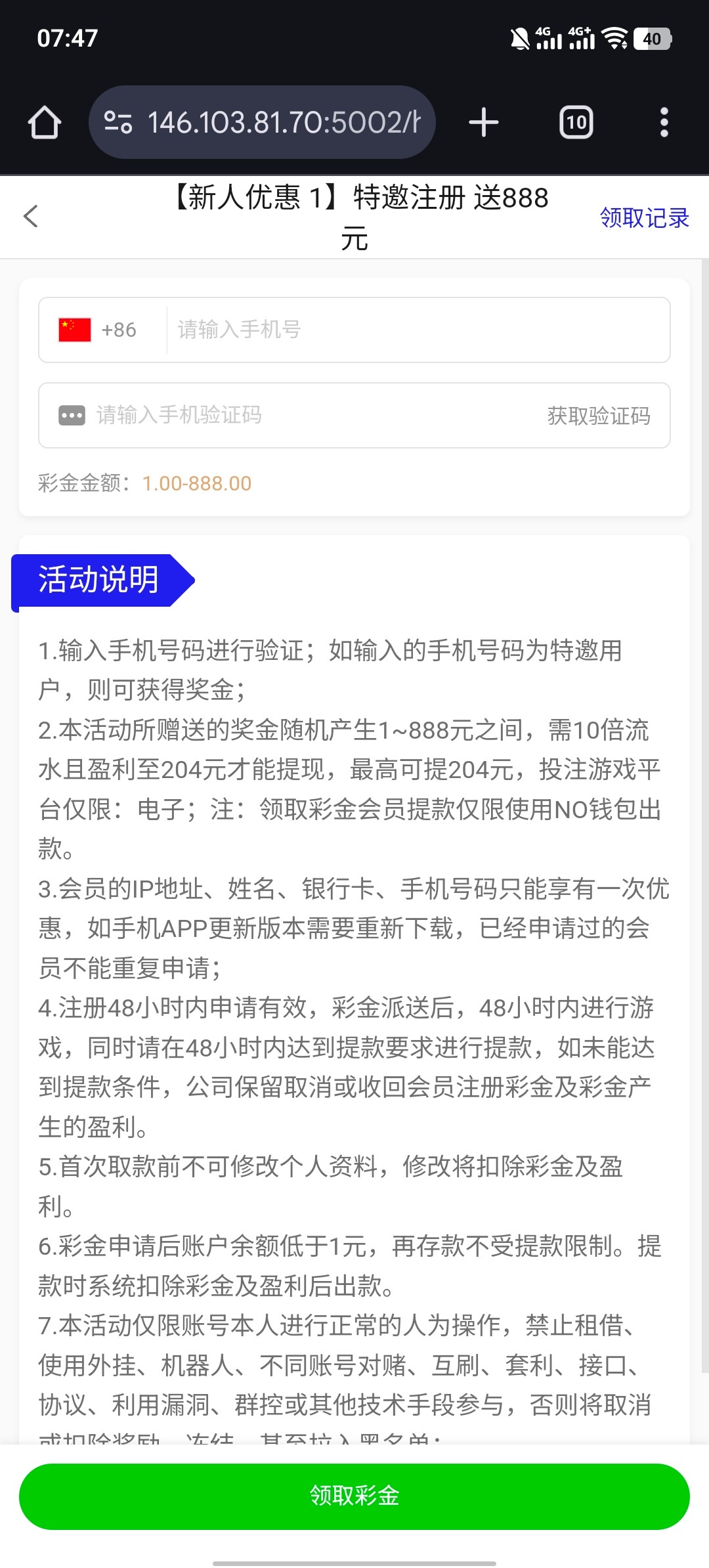 注册账号用手机号码自助领取 彩金最低1-888 网址 7456.com
