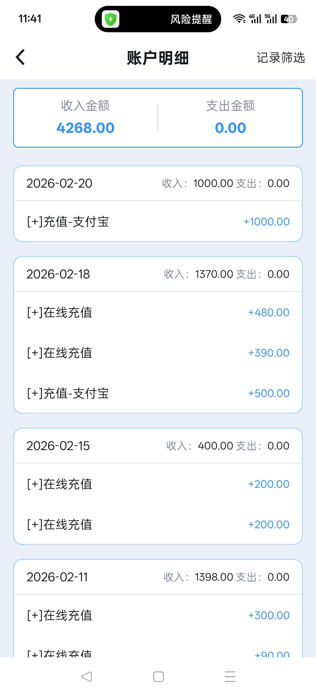①:充值金额大于1500+5000流水