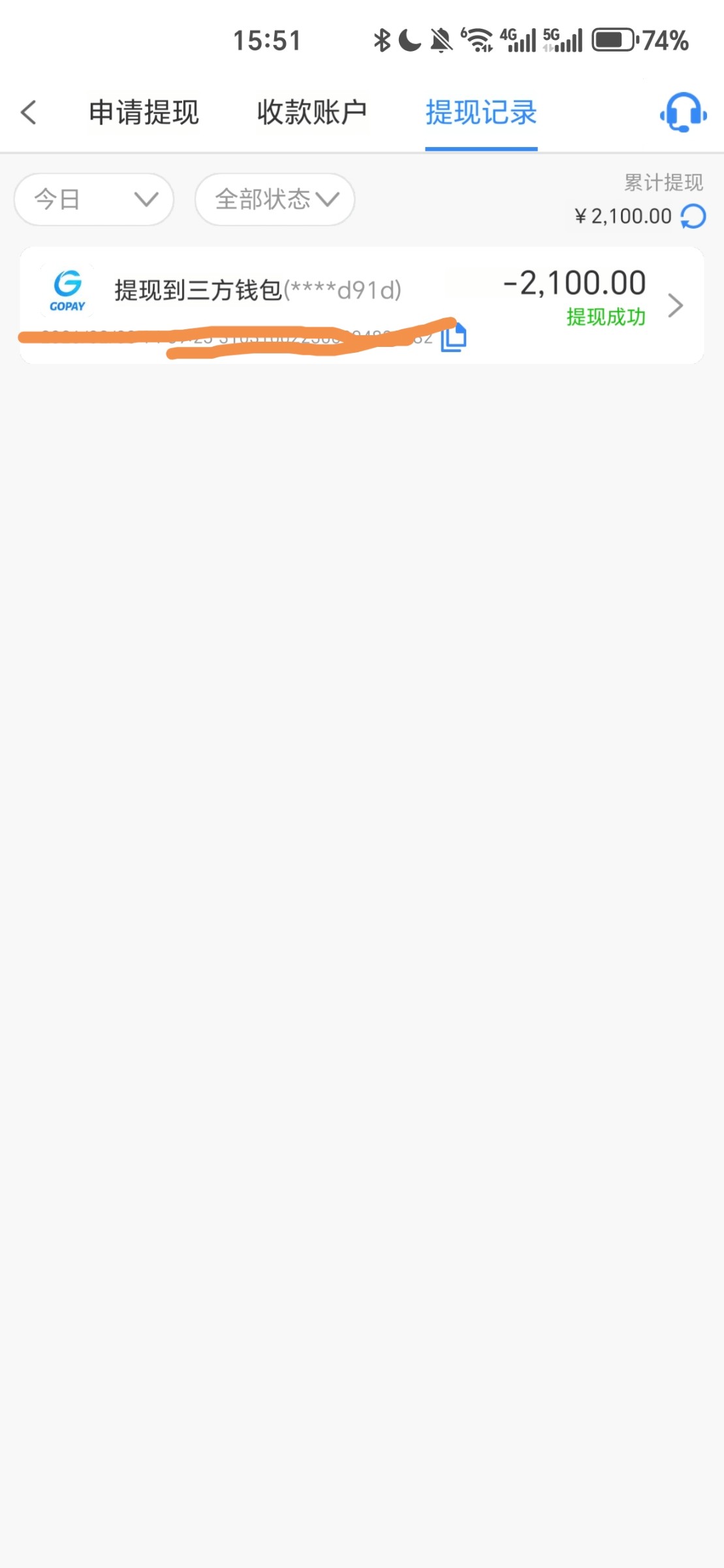 打出来了不知道能不能到帐