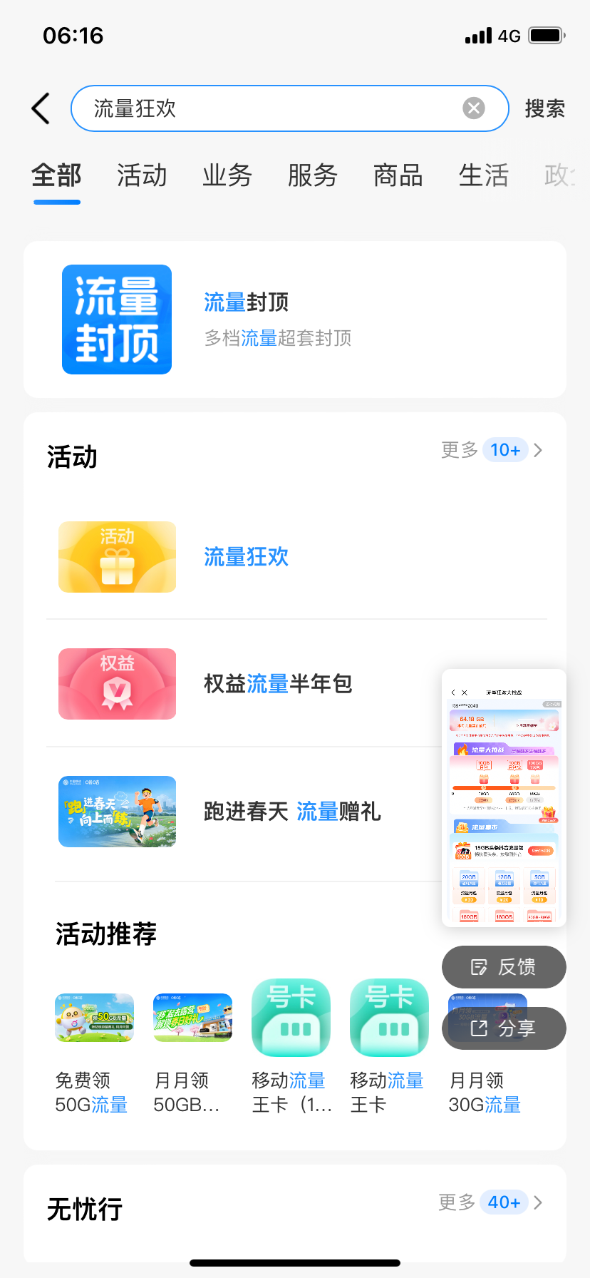 移动app ,搜流量狂欢, ,点进去,领了60G月包, ,每个人的不同,基本上都有