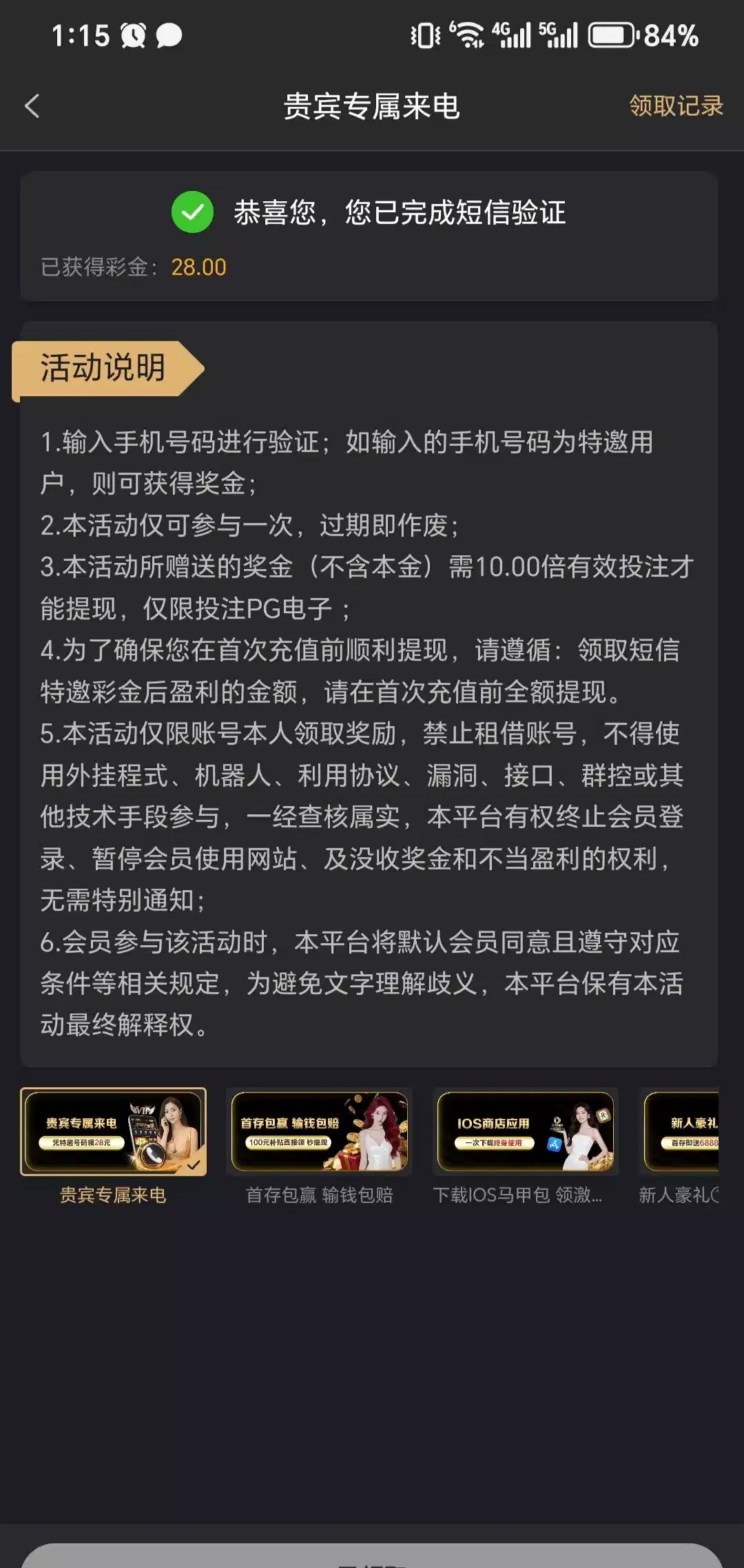 前几天没撸到,今天给我打的电话领到了,可惜没打不出,先在网页里注册了,在下载app登录就有领取28的入口了,各位自测,网址00923.vip