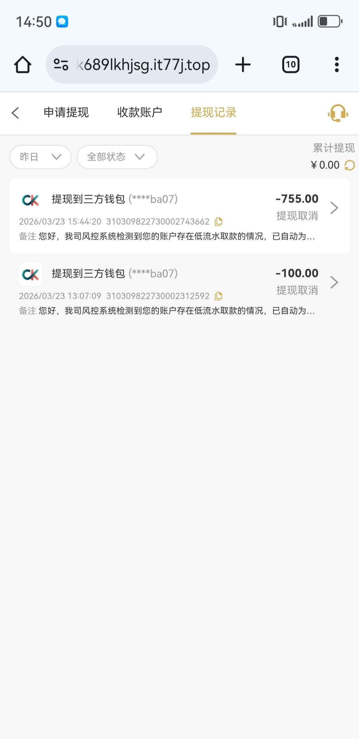 充一百提一百罚了五倍流水。打了3000流水提750又罚五倍流水,无限循环