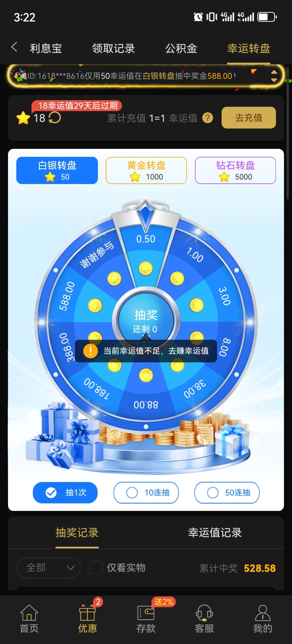 995转盘抽中388