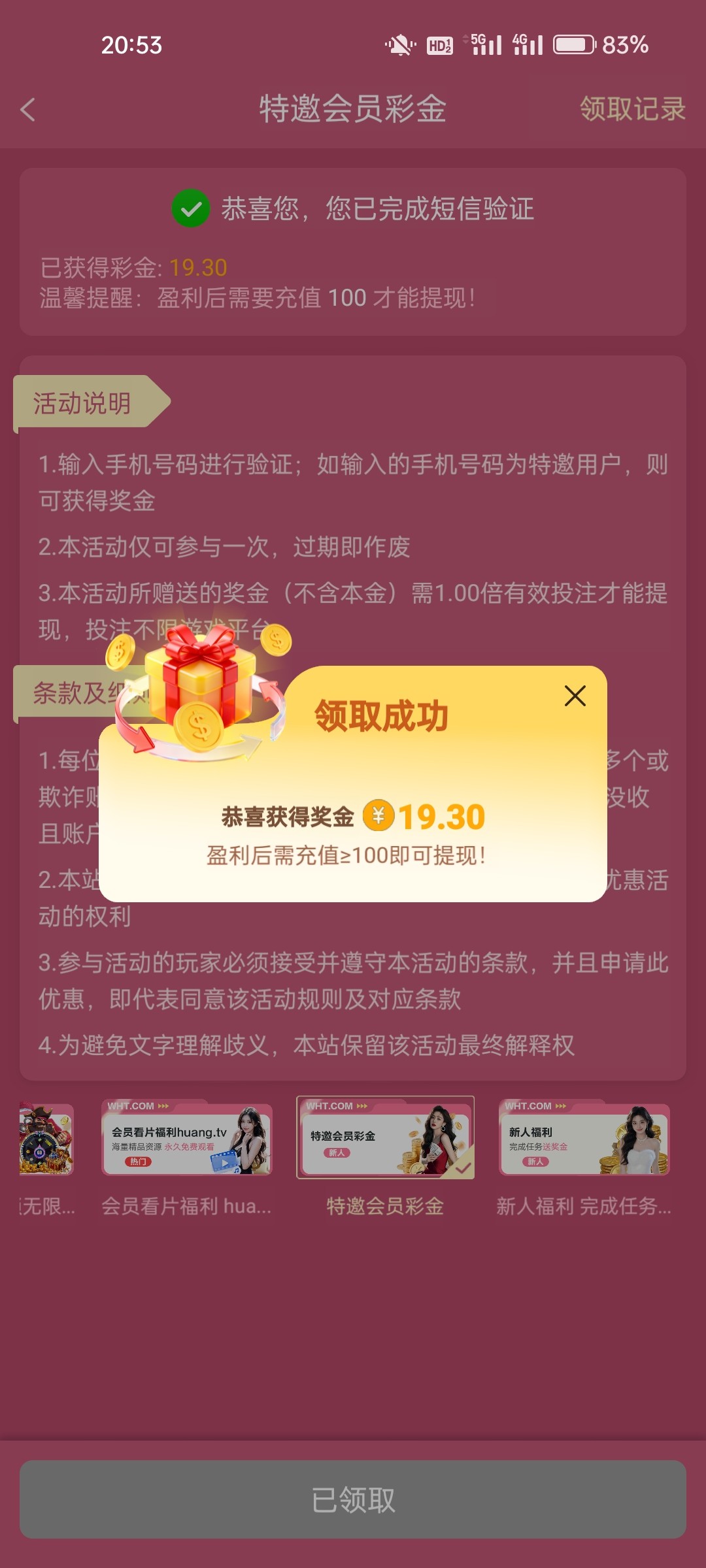 网址wht.cc 打上去要充值100我没有打上去,都去试试吧