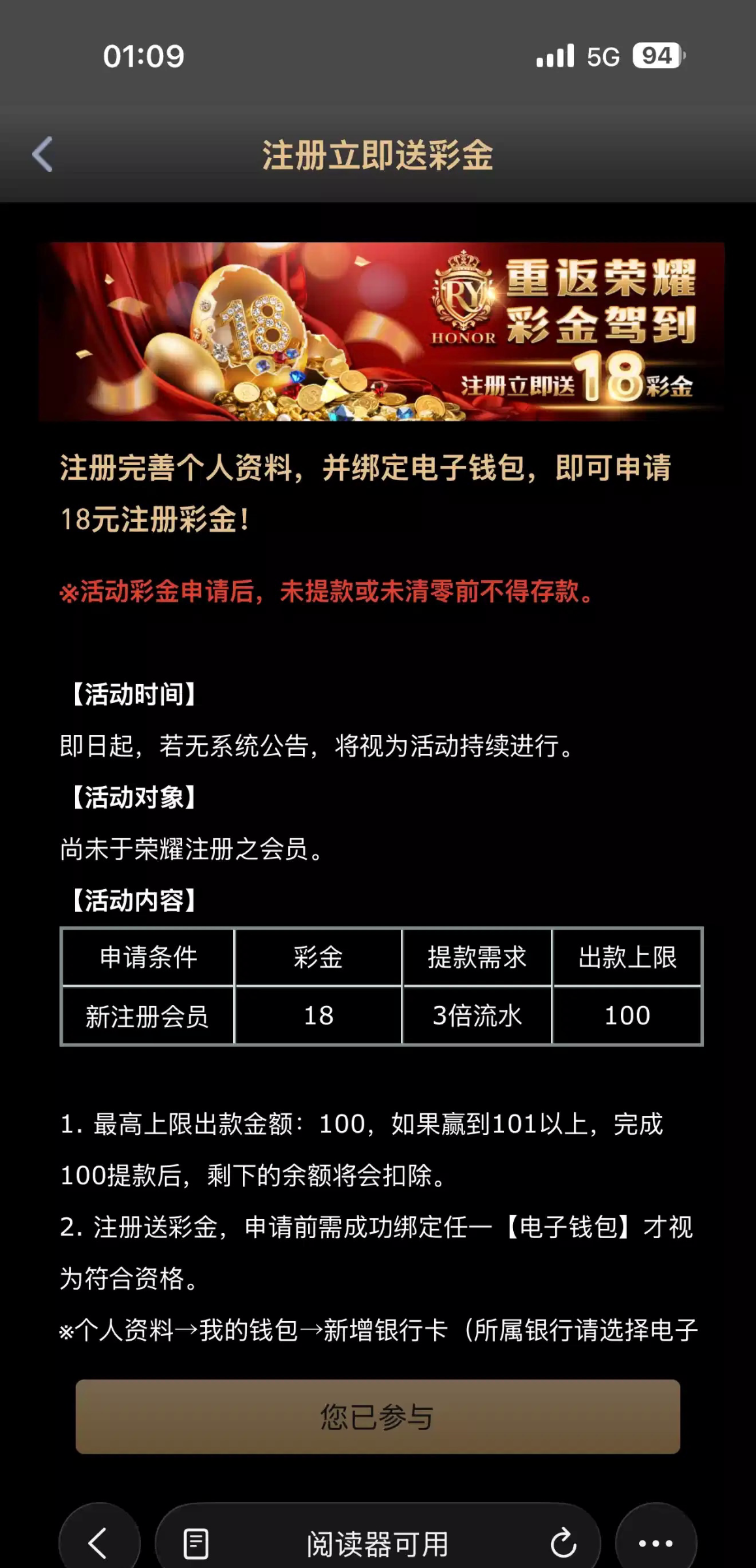 荣耀】绑定钱包送18