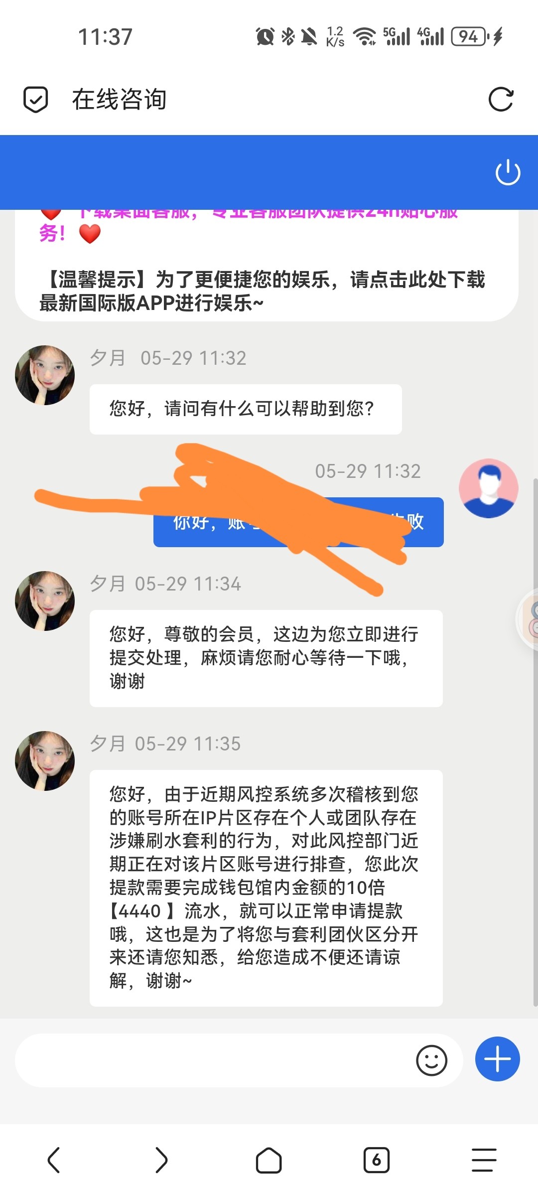 95娱乐黑两千: 没封号就还好,这两天打打流水每天不同时间段提现试试,有时候给出