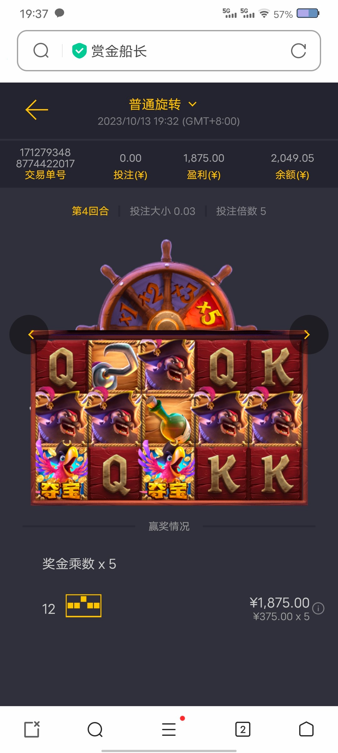 今天发工资上了80,打到800死了,又200,两百的上了,900,最后一下5船长还是×5,赶紧下分,