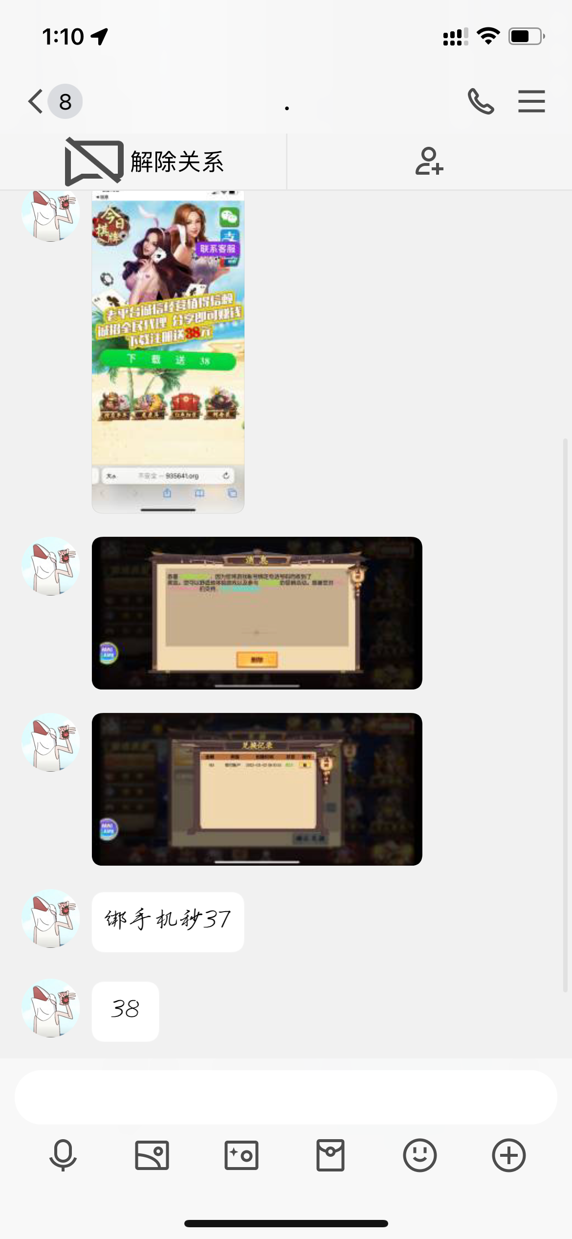 我自己收到短信的时候38直接打出来5Q