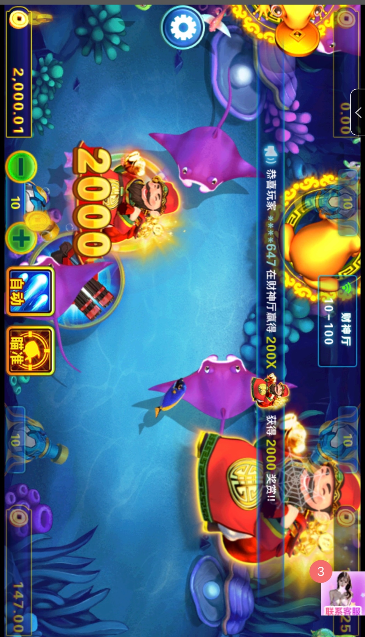 50上2000,剩的最后10块刚好碰到财神出来,锁定一发就给了200倍