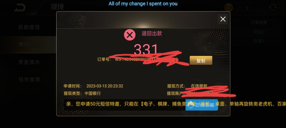 这个白嫖500到账了  就是充值300提款2500显示成功钱没到账客服进不去
