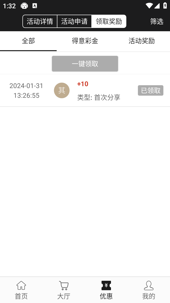 点击推广赚钱,随便生成一个地址,然后复制链接,然后自己去浏览器登录一下链接,回到优惠中心就可以领取10直接提,链接中间有空白部分删掉才能登录