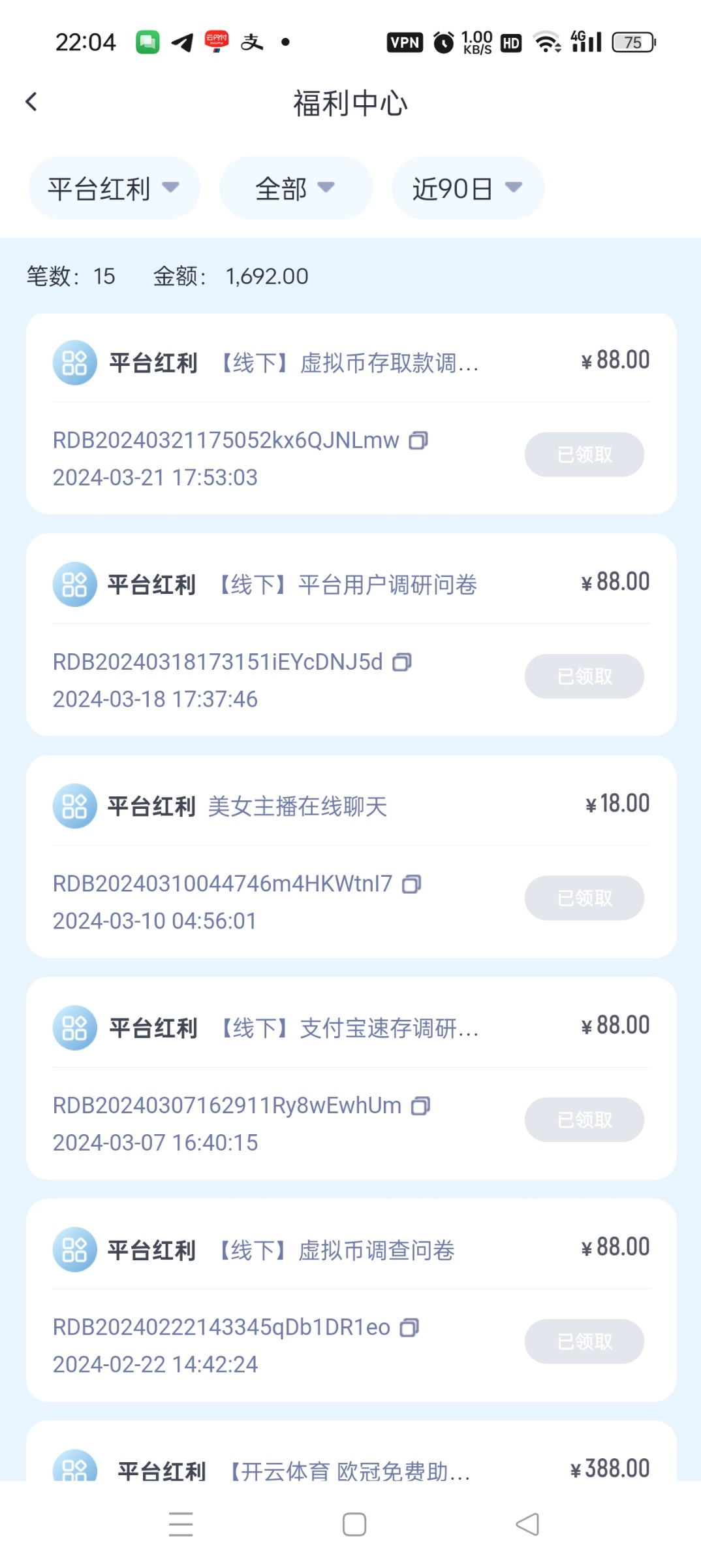 问卷填完了次日下午四点多福利中心领,有就有没有就没有,回归活动没领的可以领一下。