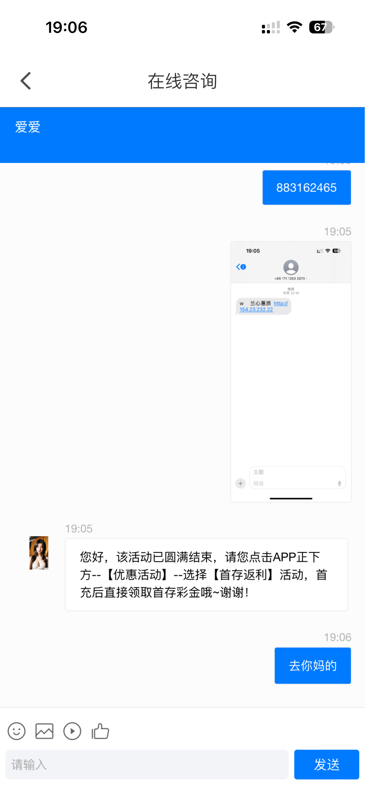 我草他马勒戈壁,我去申请说活动结束,要不就是不符合条件,傻逼狗庄,老子有短信也不送