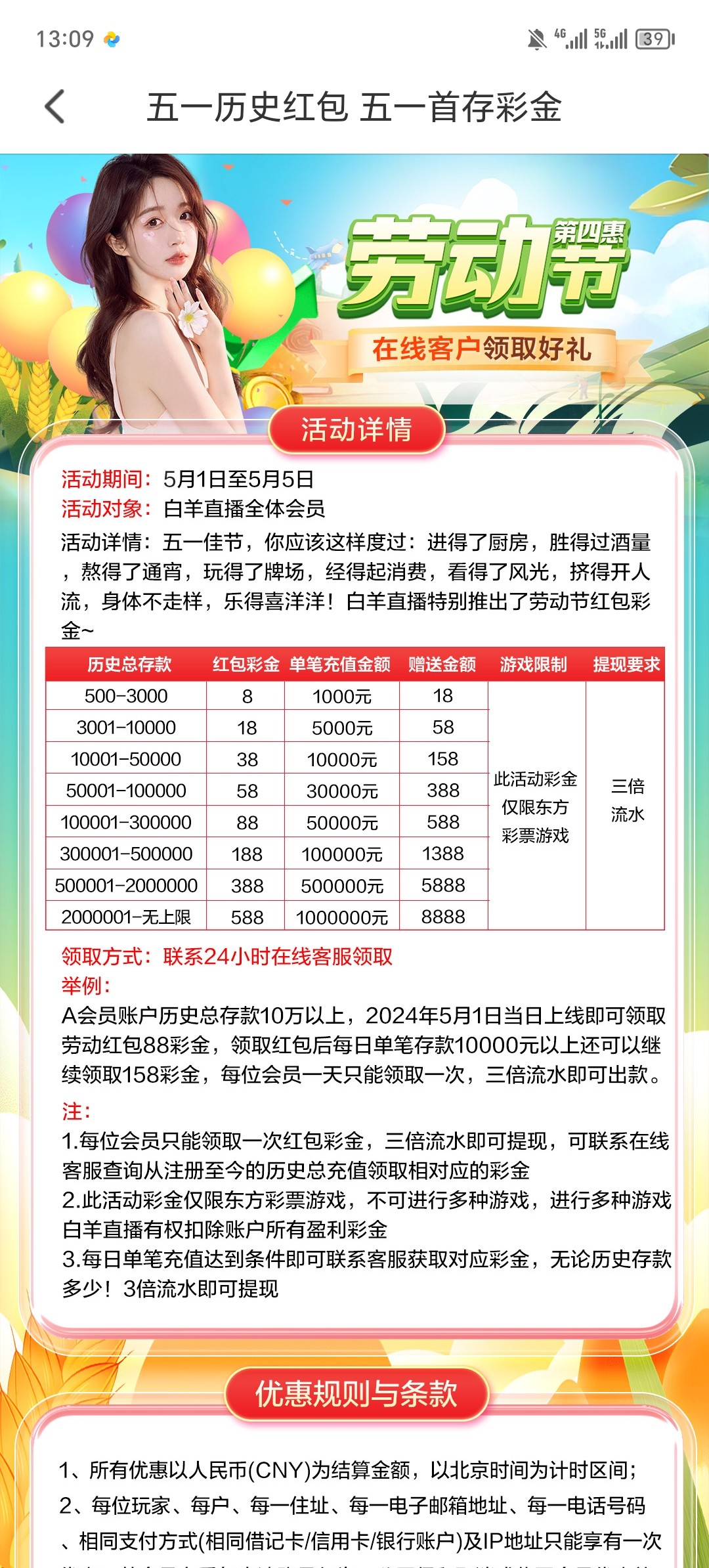 白羊直播历史存款回馈彩金