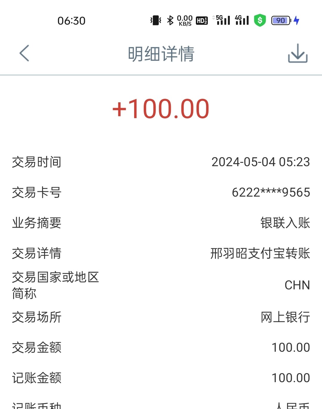 到账一百