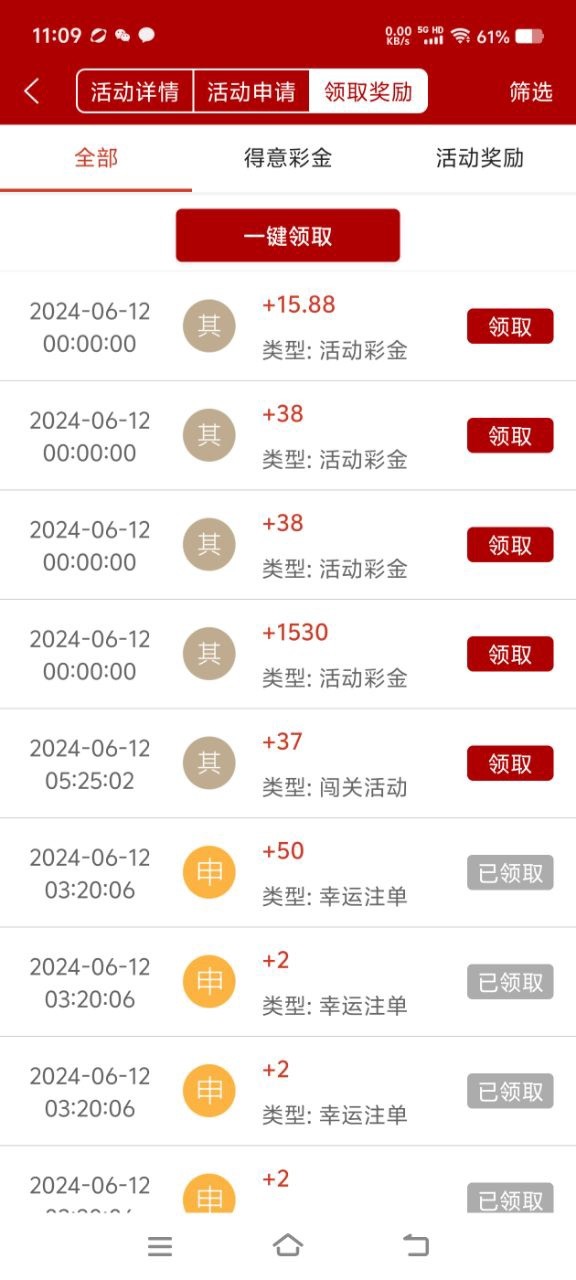 昨天打了一天,今天领这么多彩金
