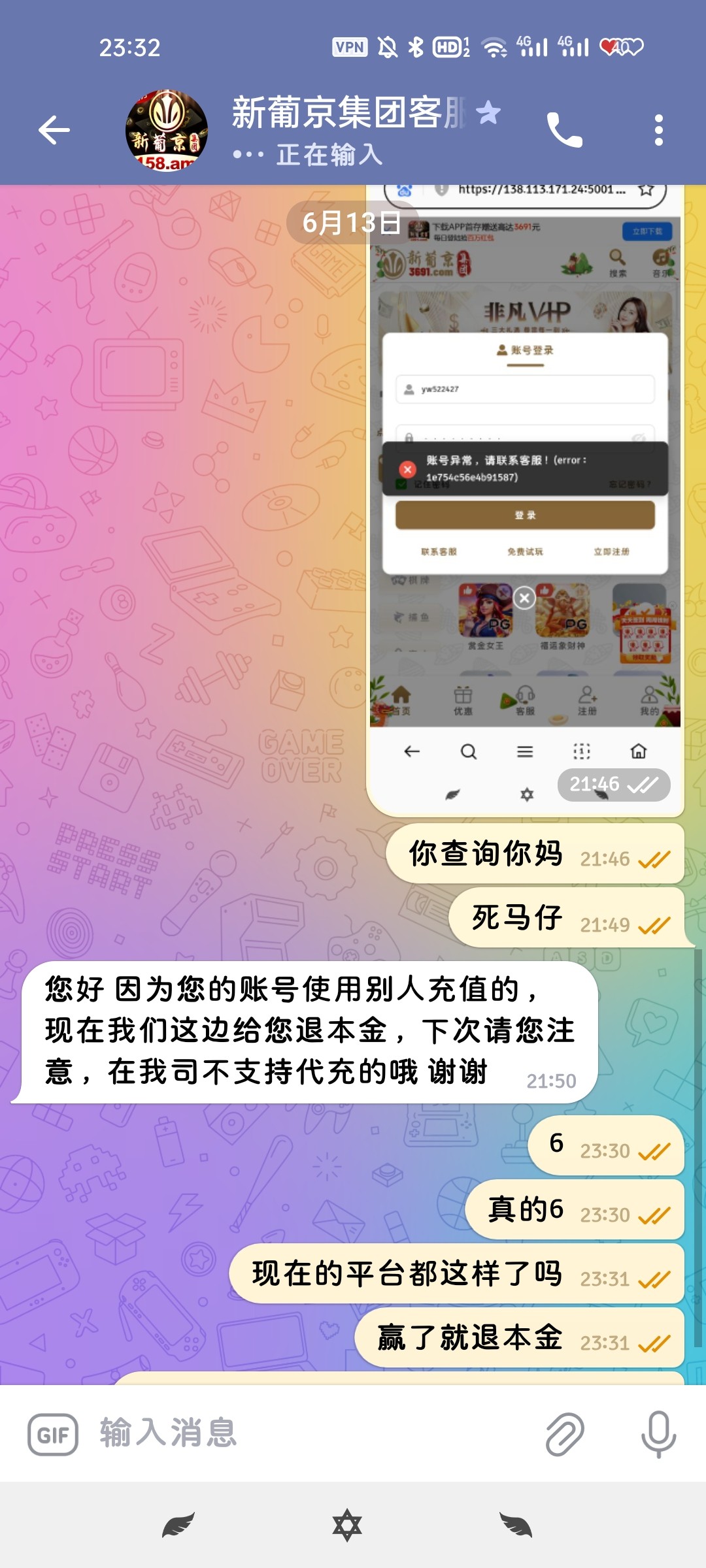 那人之前是朋友,他自己也赌,我只是借用了他的号打电子,我都说了出款了对半分也不要,既然这样就当欢乐豆打了