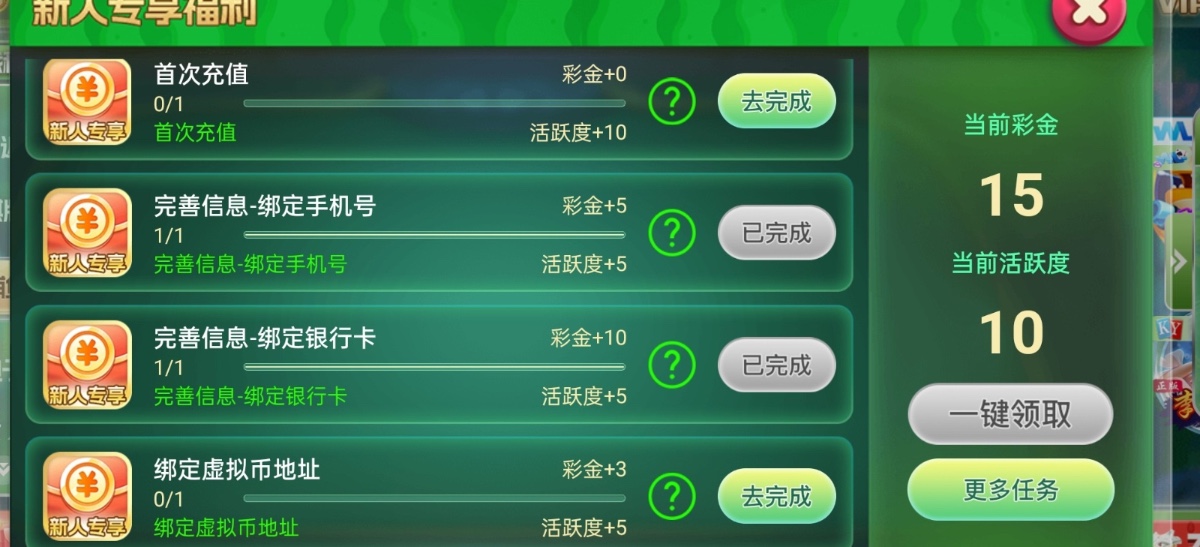 新用户下载注册完善信息游戏活动自助领取15彩金,白嫖勿充值