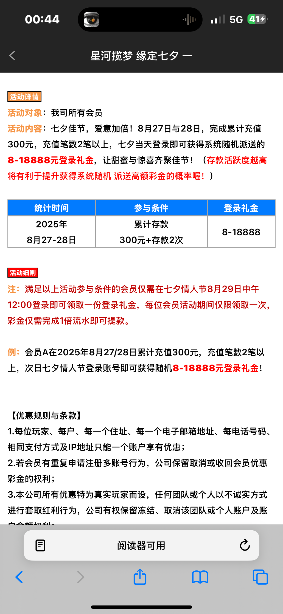 这个七夕彩金要不要上看情况吧 27-28号累计充值300就有8-18888 之前是送了388 应该有点格局 看自己要不要上