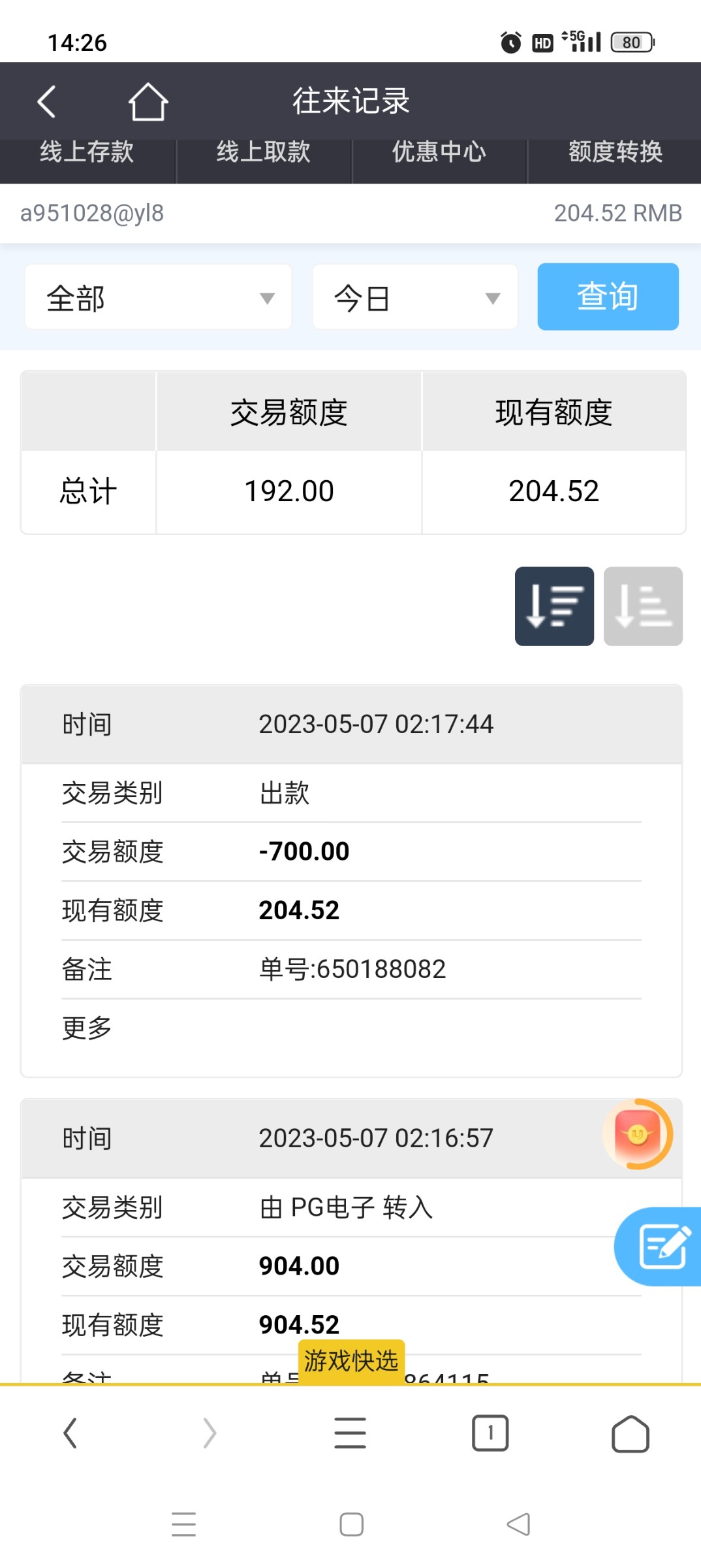 之前一直有玩提现正常。后面他充值渠道少了就没过完了前几天白嫖了300提现叫我充值。今天充了300打到900提了700加上卡通道300就是1000不知道能不能到账。有点慌