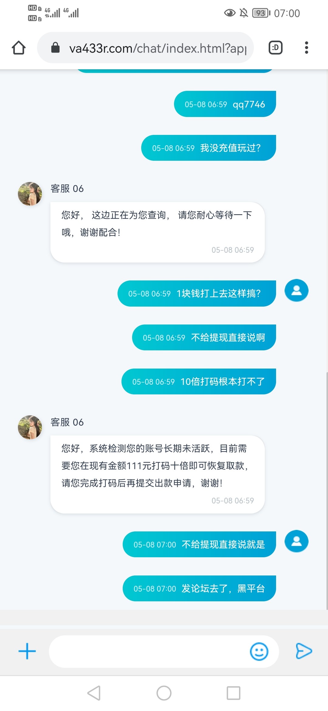 这逼台子以前特邀送58挂了,后面说100送58。打了300出来,就好了没有玩了,刚刚早上1块搞到100提现退回来说10被打码。打够了用钱能钱包提现说在维护,现在提卡不知道能不能到,