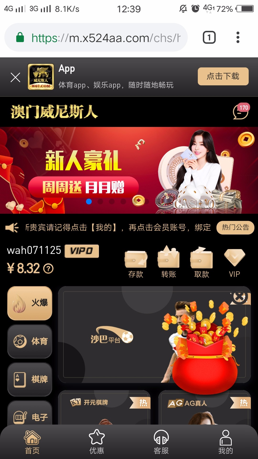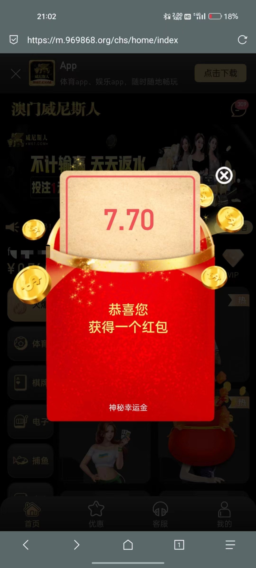 老用户登陆部分有回馈彩金,群友送了9+