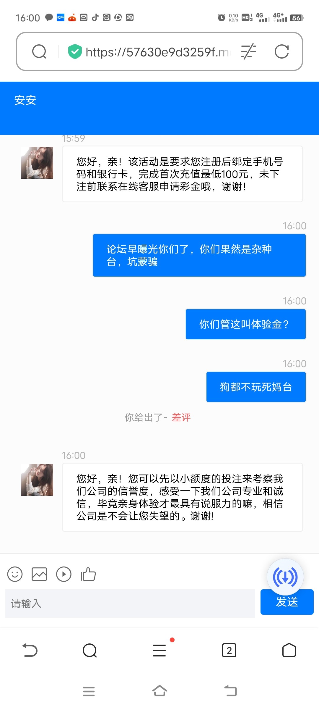 超级傻逼这台子 电话里跟我说 不管客服说什么后台都会给我送,半个月打四五个电话 最垃圾恶心的台子 没有之一