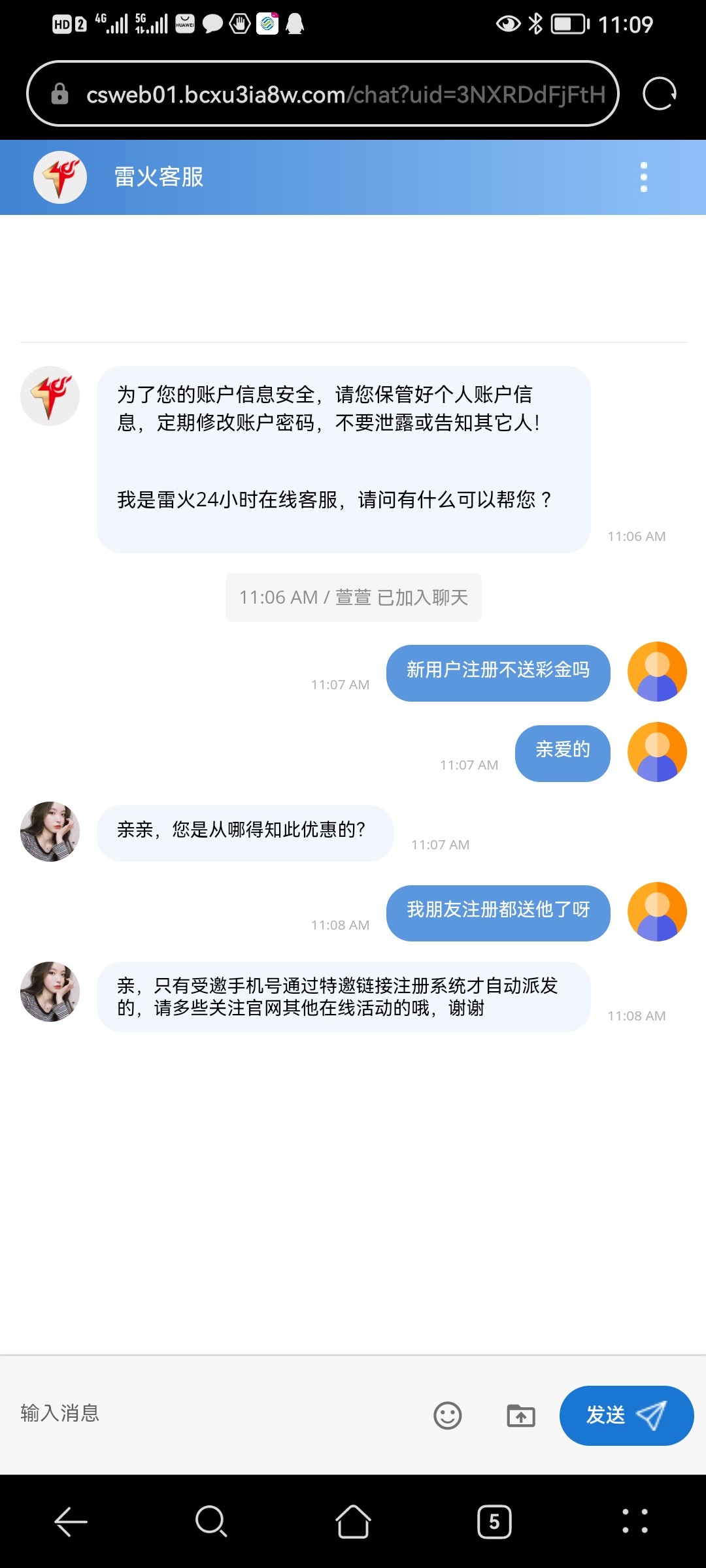 死吗客服给我打电话说送彩金,加了qq又说充200包赔100
