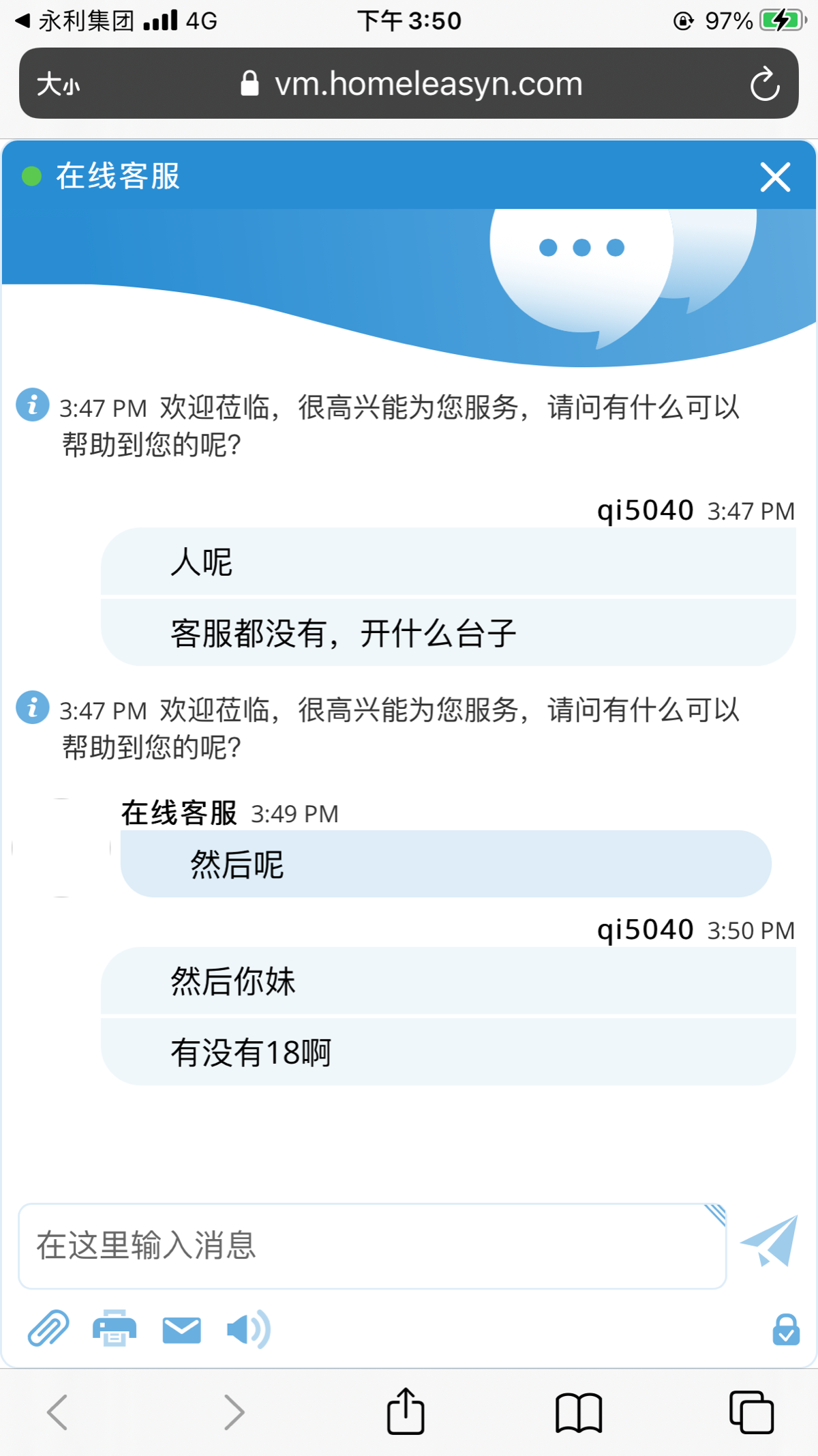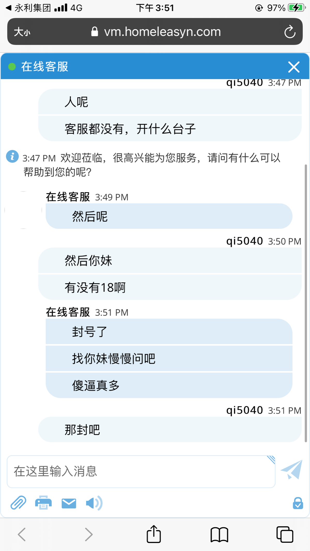操你妈的野种,客服根本就不回我信息,你个垃圾